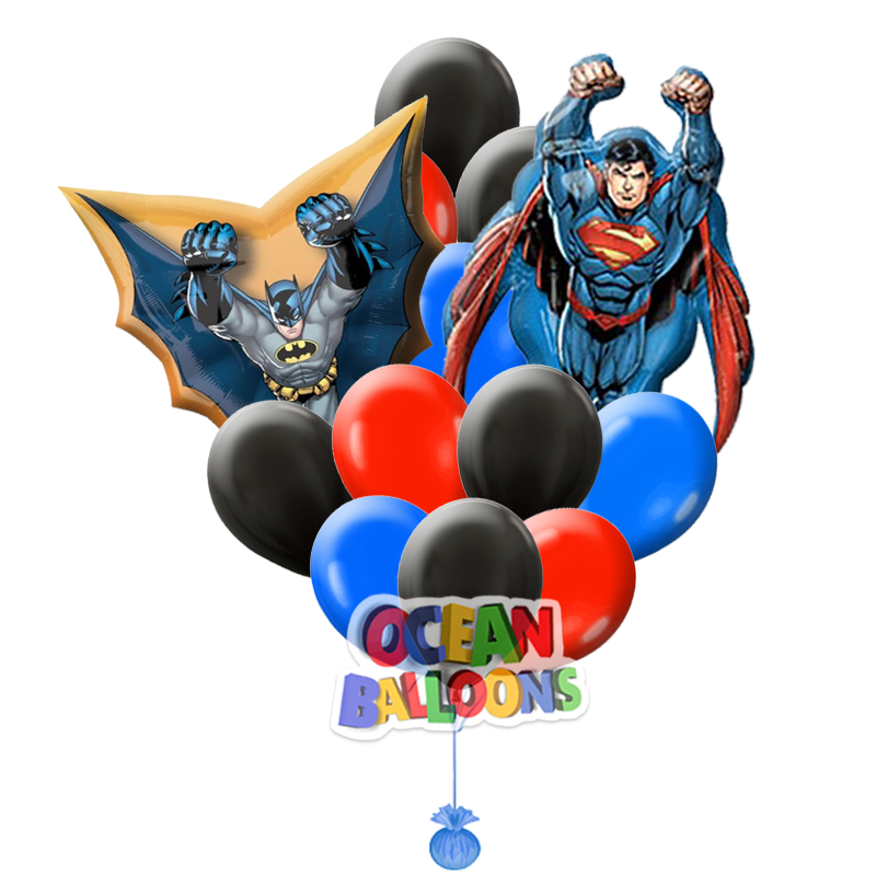 Букет из воздушных шаров «Бэтмен и супермен» - лучший подарок для маленьких супер героев. Композиция состоит из 15 обработанных воздушных шаров и 2 фольгированных фигур!