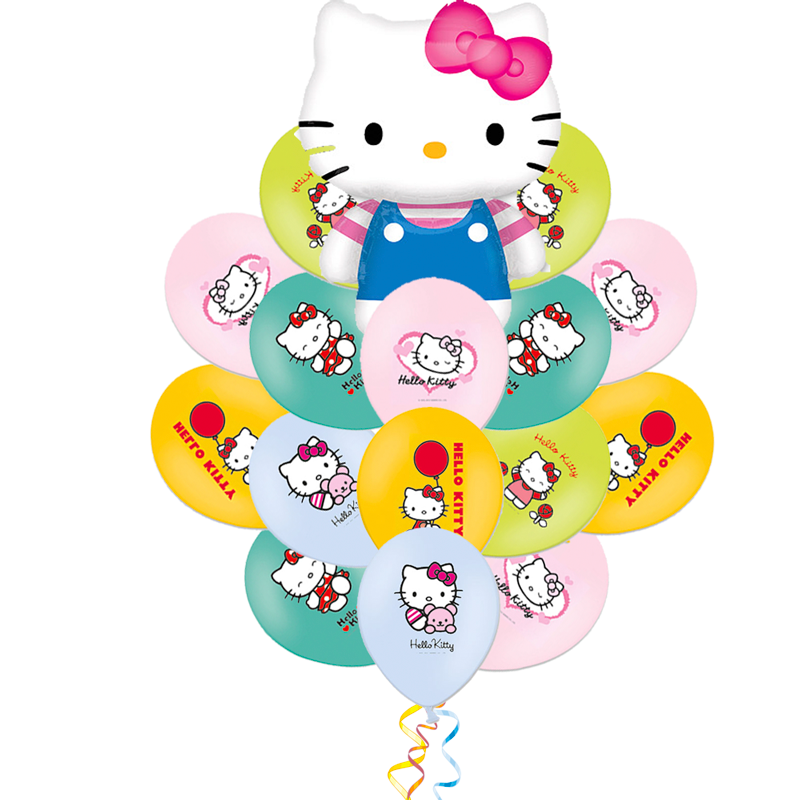 Букет шаров с рисунками (HELLO KITTY) 16 штук, 1 фигура "Котенок Китти с бантиком",