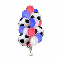 Букет "Футбольный праздник", состоящий из 15 латексных воздушных шаров и 4 фольгированных шаров-мячей, станут красивым украшение Вашего праздника!