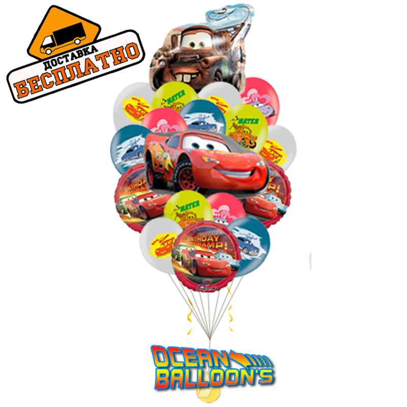 Композиция «Тачки 3» состоит из 15 разноцветных латексных воздушных шаров с рисунком всеми любимыми мультипликационными героями Тачек, 3 фольгированных кругов и 2 фольгированных фигур из мультфильма тачки приятно удивят и приведут в восторг вашего мальчик.