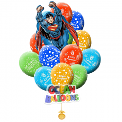 Букет из воздушных шаров «С Днем Рождения Супермен» создаст прекрасное настроения всем маленьким любителям этого супергероя. Композиция состоит из 10 обработанных воздушных шаров с надписью С днем рождения и 1 фольгированной фигуры!