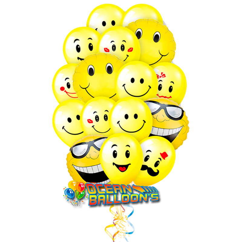 Букет «Смайлики очаровашки» состоящий из 25 воздушных шаров и 4 фольгированных шариков смайлов идеальный подарок на День Рождения. Поднимет настроение и заставит улыбаться.