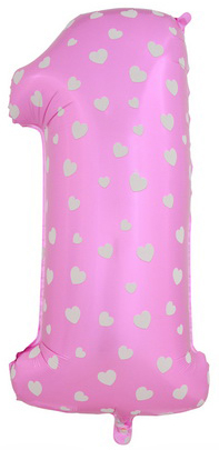 Цифра 1 розовая с сердечками