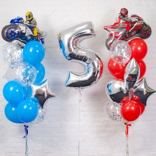 Фольгированная цифра 1шт. на ваш выбор, 6 фольгированных шаров и 2 фигуры.