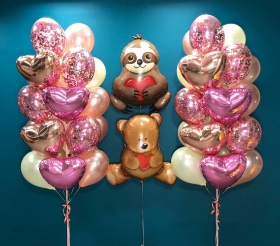 Готовое решение «Ленивец и Мишка» в интернет-магазине OCEAN BALLOONS. Заказать с доставкой! Тел.: +7-926-392-39-88.