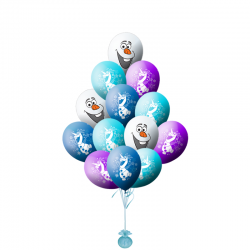 Композиция «Олаф» из латексных воздушных шаров с гелием и с рисунками Олафа, будет самым лучшим подарком.