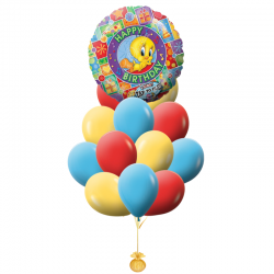 Букет "Музыкальное Поздравление от Твитти", состоящий из 20 латексных воздушных шаров, 1 фольгированного шара с поздравлением и поющего фольгированного шара, принесет радость и подарит незабываемые эмоции имениннику! Инструкция: Для ВКЛЮЧЕНИЯ музыкального поздравления необходимо легко хлопнуть по шару в указанной зоне - "Tap to Play".