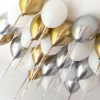 | Группа: | Шарики под потолок хром золотой серебро и белый с дождиками |