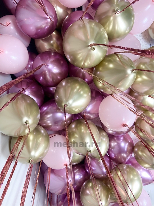 | Группа: | Шары под потолок хром золотой фиолетовый и розовый с дождиками |