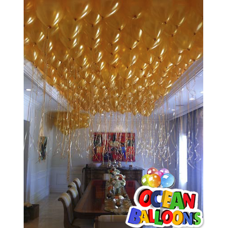 "Золотое облако", состоящее из 50 воздушных шаров, будет великолепно смотреться как в связке, так и под потолок! Станет красивейшим украшением Вашего праздника или приятным подарком близкому человеку!
