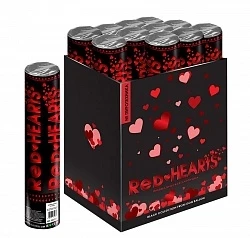 Пневмохлопушка размером 30см. В качестве наполнения используются красные металлизированные сердца.