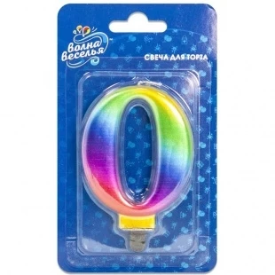 Свеча цифра 0 радужная в интернет-магазине OCEAN BALLOONS. Заказать с доставкой! Тел.: +7-926-392-39-88.