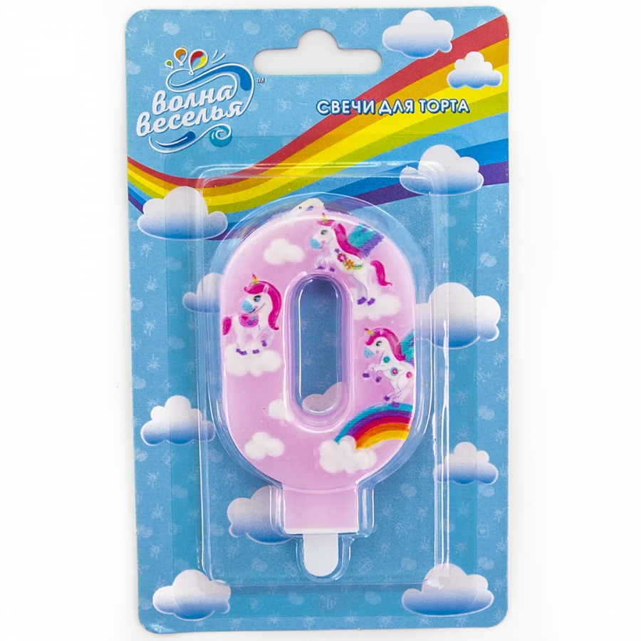 Свеча Цифра, 0 Волшебные единороги, Розовый, 9 см в интернет-магазине OCEAN BALLOONS. Заказать с доставкой! Тел.: +7-926-392-39-88.