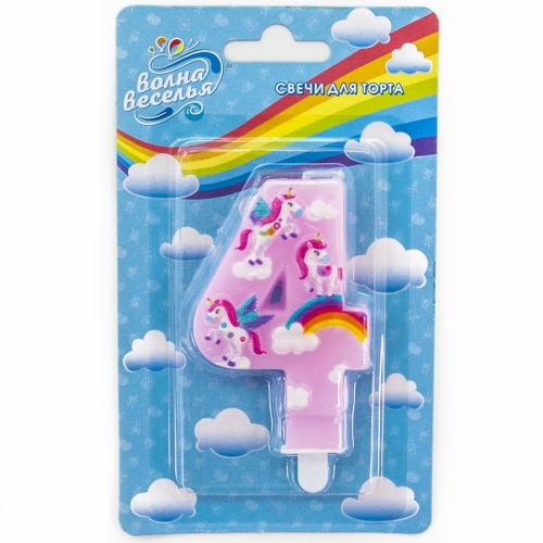 Свеча Цифра, 4 Волшебные единороги, Розовый, 9 см в интернет-магазине OCEAN BALLOONS. Заказать с доставкой! Тел.: +7-926-392-39-88.